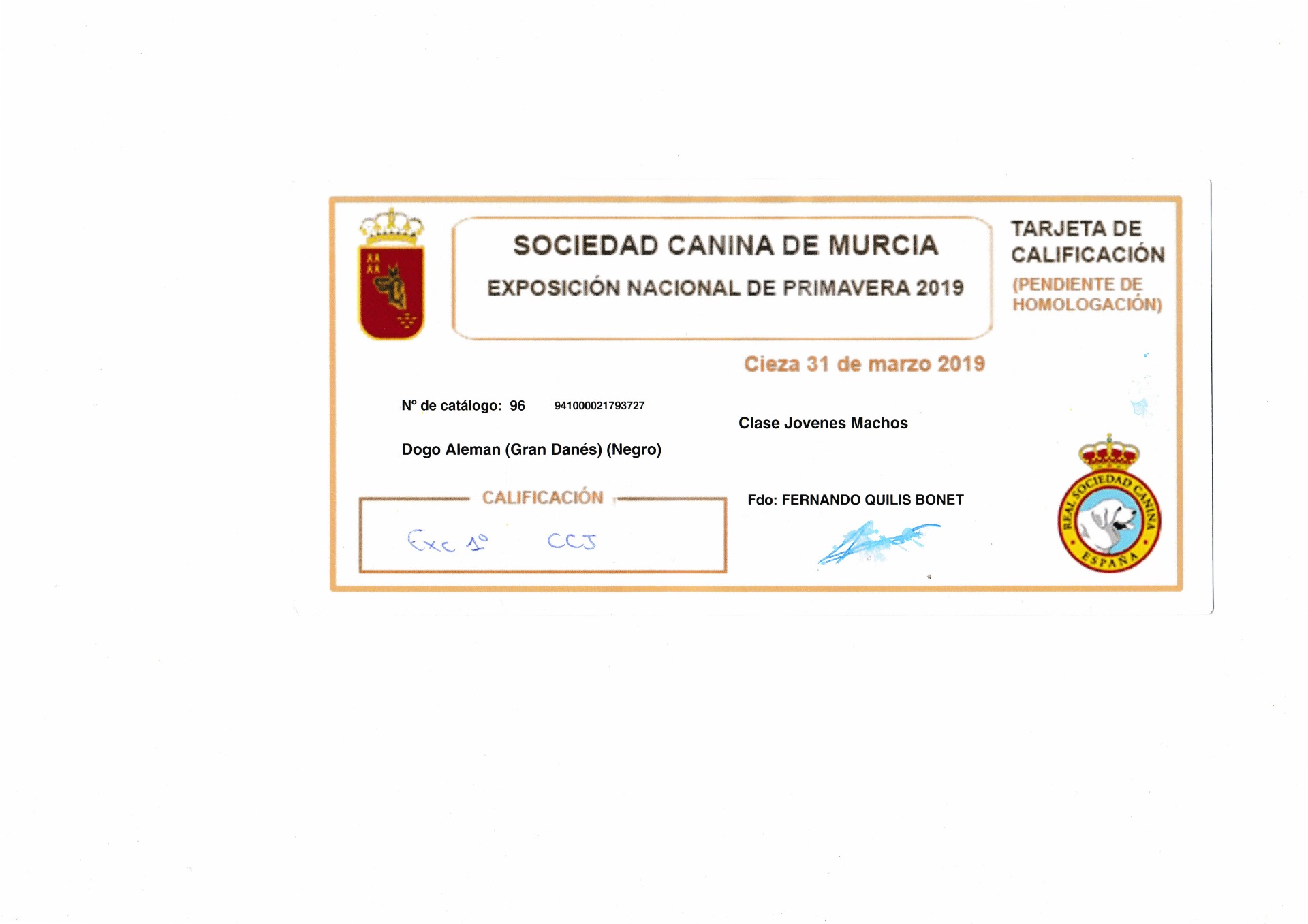 EX. NACIONAL DE PRIMAVERA 2019 CIEZA - (MURCIA). CL. JOVEN EXC.1º CCJ.